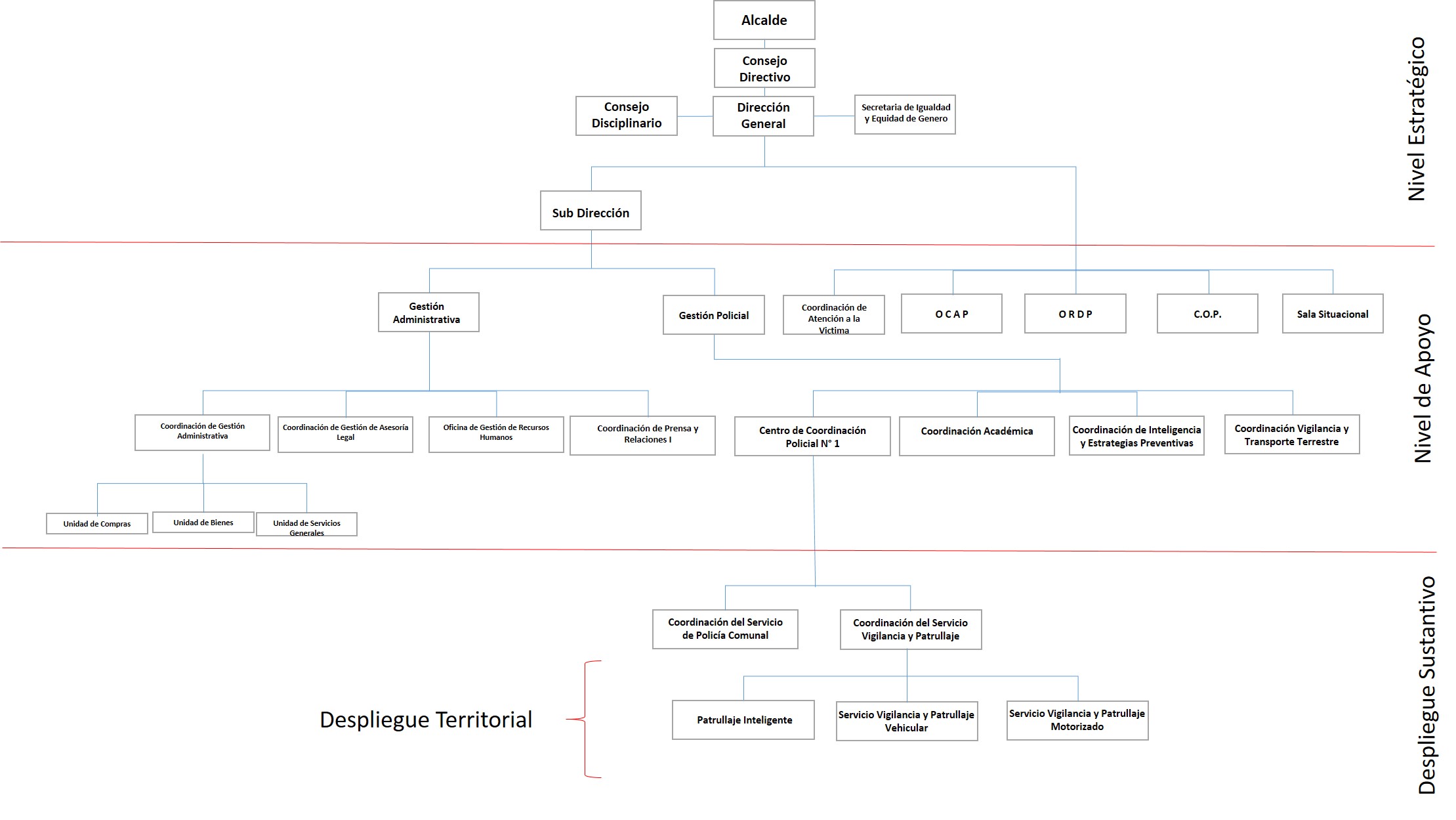 Organización estructurada según estándares del Nuevo Modelo Policía Venezolano